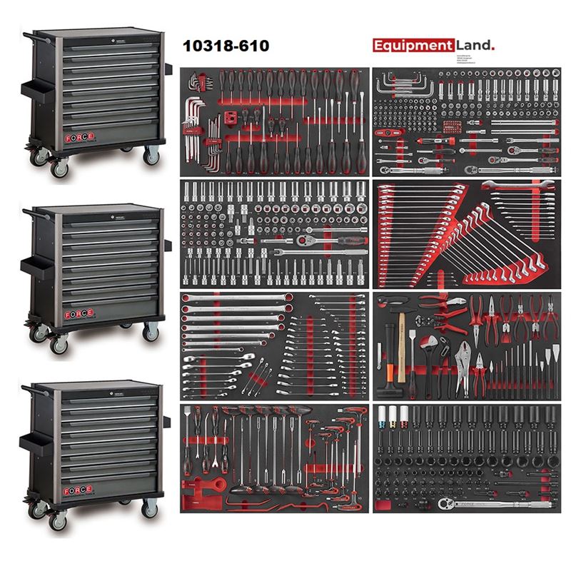 Zeer veel opbergruimte in deze fraai vormgegeven solide Force gereedschapwagen van hoge kwaliteit. Deze Black Edition Jumbo gereedschapwagen is uitgerust met 8 kogelgelagerde laden en is gevuld met 610 stuks gereedschap. Dankzij de professionele fabricage van stevig dik plaatstaal voorzien van poedercoating is deze gereedschapwagen kras- en slijtvast en hoogwaardig afgewerkt. De laden zijn dubbel solide kogelgelagerd zodat deze zwaarder belastbaar zijn, geschikt voor zwaar en intensief gebruik. Het verplaatsen van de gereedschapswagen is eenvoudig te doen door middel van de vier gelagerde wielen, waarvan 2 zwenkwielen met rem.