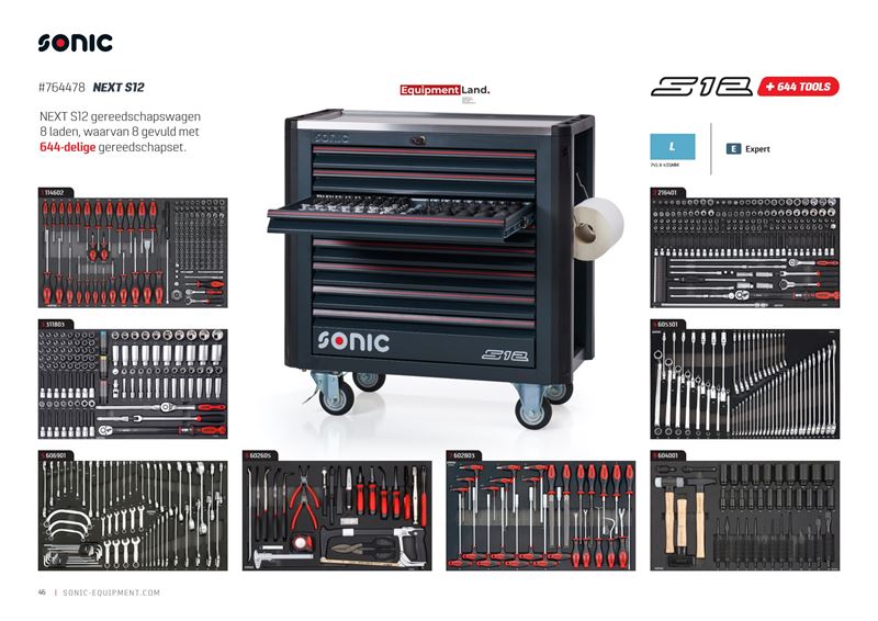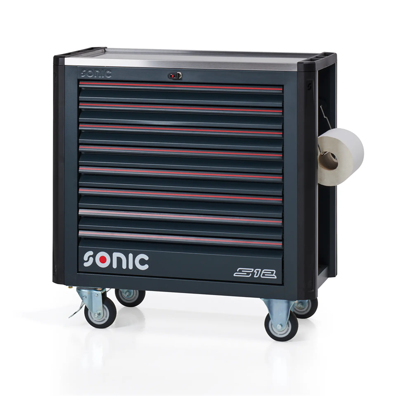 De Sonic NEXT S12 gereedschapswagen is een van onze bestsellers voor technici die op zoek zijn naar een intermediate tot advanced gereedschapset. Deze extra breedte van de gereedschapswagen is handig voor extra opslag, terwijl er in de diepte toch een slank formaat behouden blijft. Met een breedte van 100 cm en een diepte van slechts 52 cm is het de juiste balans tussen design, kwaliteit en prijs voor het optimaal gebruiken opslagruimtes in de werkplaats.