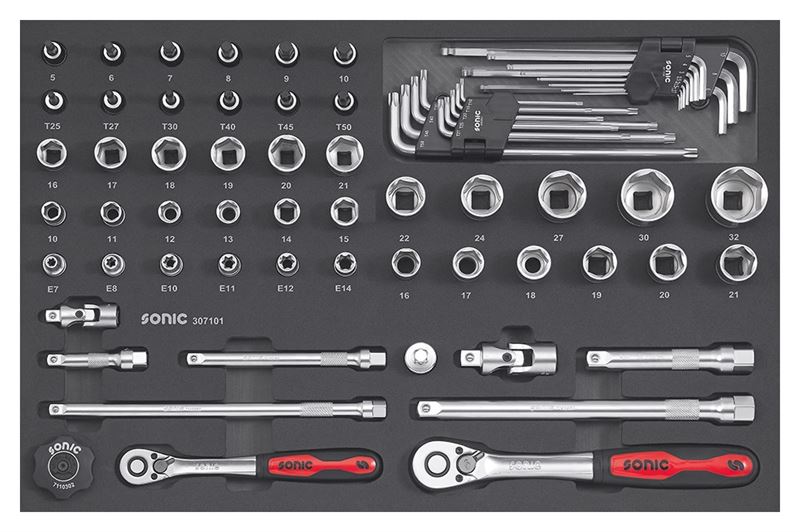 Een 71-delige doppen-/socketsset (3/8" & 1/2")