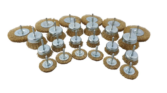24 Delige set borstels van gegolfd staaldraad met een 6 mm aandrijfschacht voor gebruik op elke boormachine.