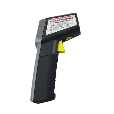 Soms ook wel laser thermometer genoemd, omdat het gebruik maakt van een ingebouwde laser om op het oppervlak te richten, maar het is echt een "non-contact" infrarood thermometer dat de elektromagnetische straling afkomstig van het oppervlak meet.